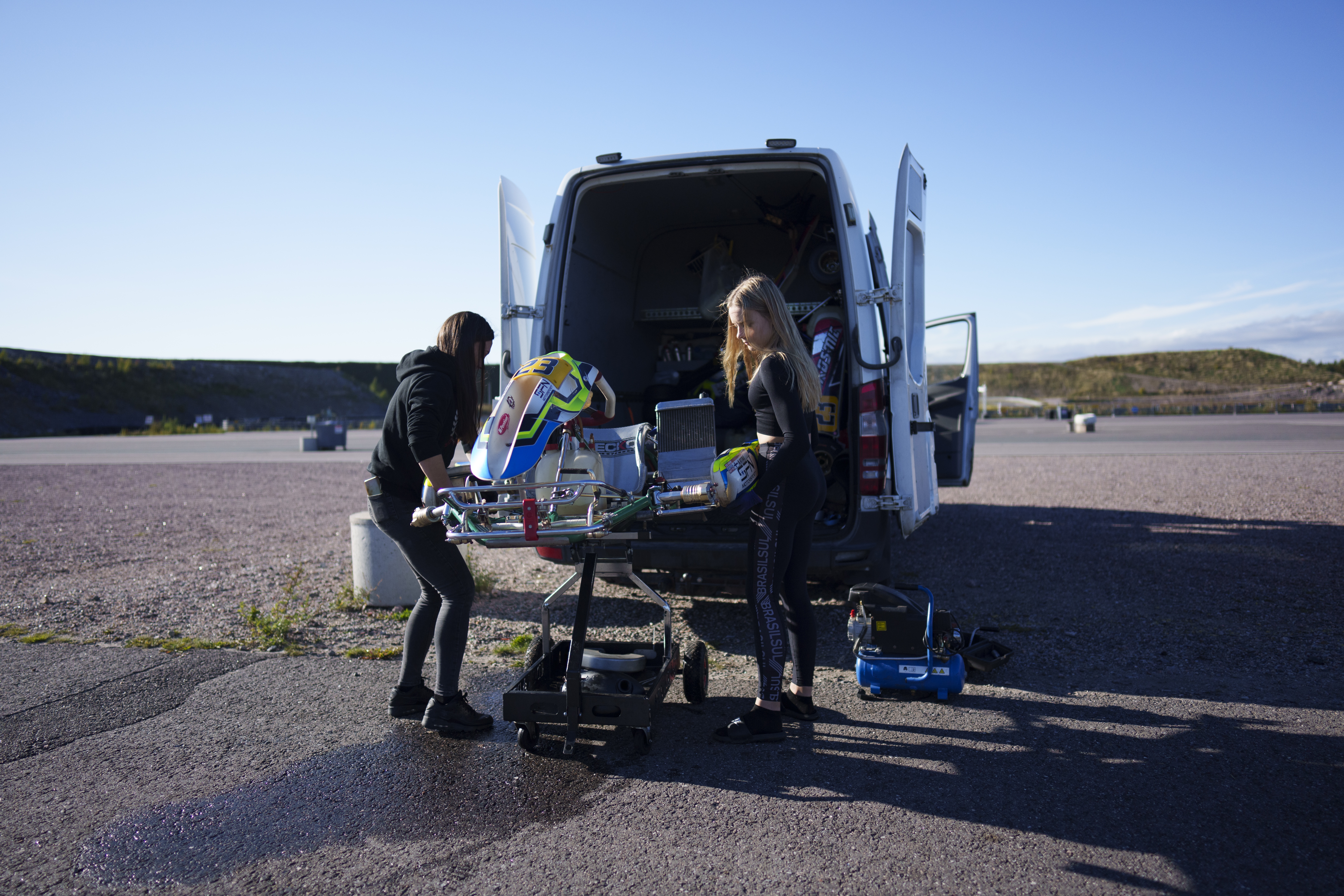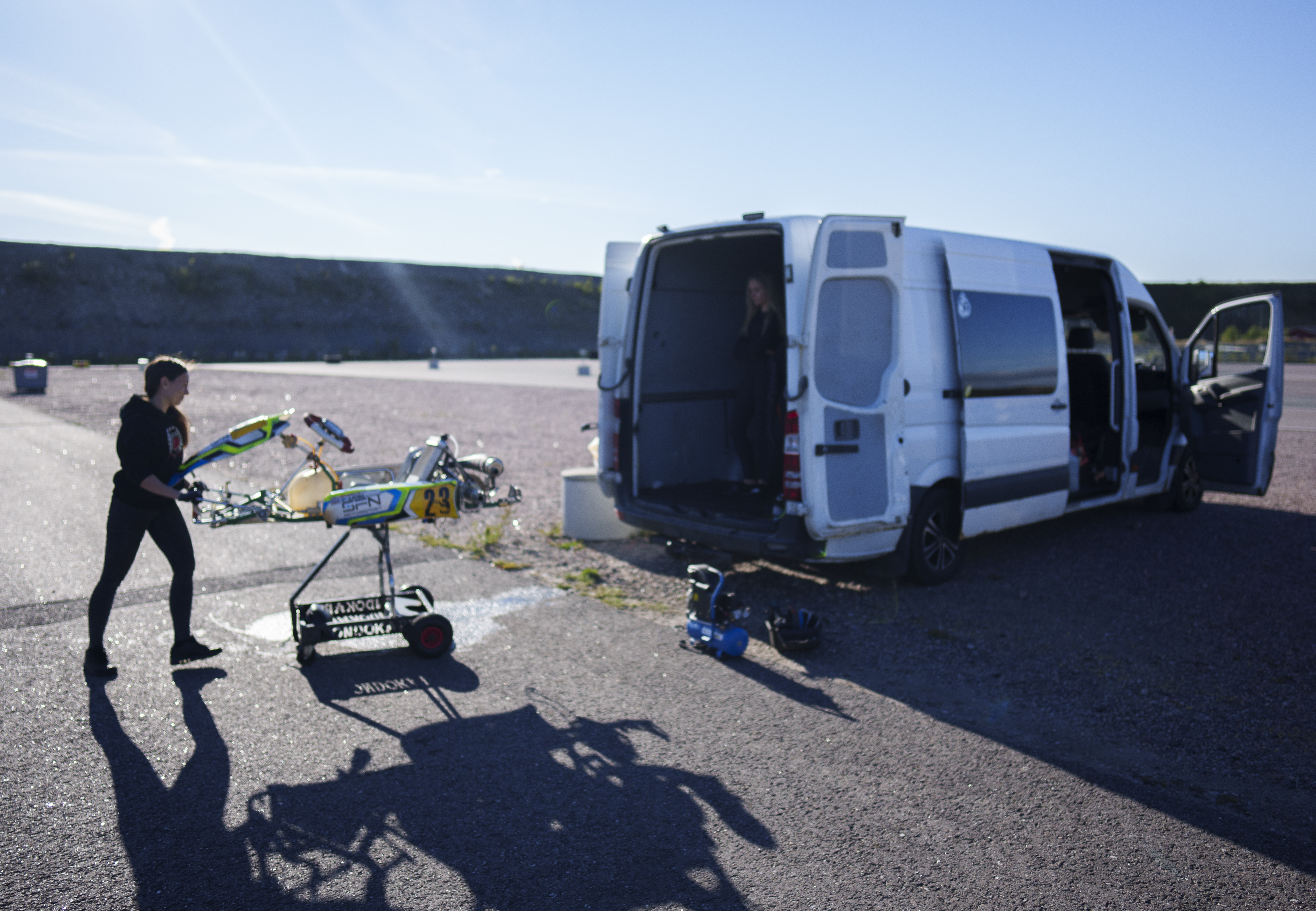 Kauden 2019 alkaessa olimme palanneet lähtöpisteeseen. Meillä ei ollut kuljetuskalustoa. Nean auto oli saatu keväällä säilytykseen Pippon kartingradan konttiin ja muu kalusto liikkui tuolloisella ”kauppakassillamme” Hyundai Getzillä. Äitienpäivä ja ensimmäiset kilpailut Alahärmässä häämöttivät. Kuljetuskaluston hankinnalla alkoi olla kiire. Olimme jo kokeilleet henkilöautoa ja peräkärryä, mutta majoittuminen hotellissa ei ollut meidän juttumme. Olimme myös kokeilleet asuntoautoa ja peräkärryä, mutta asuminen kaupungin keskustan tuntumassa, teki kyseisen kuljetuskaluston säilyttämisestä vaivalloista. Mikä kuljetuskalusto olisi meille sopivin? Hankinnassa keskeiseksi pohdinnan aiheeksi nousi ajoneuvon ajokorttiluokat ja ajokorttiluokkien vaikutus ajoneuvon juokseviin kustannuksiin. Pakettiautoissa löytyy niin matkailuautoksi kuin kevyt kuorma-autoksikin rekisteröityjä yksilöitä. Kunkin kohdalla on omat hyvät ja huonon puolensa. Kevyt kuorma-auton ylläpitokustannukset tippuvat vero ja vakuutusmaksujen myötä, mutta ajoneuvossa lain mukaan oltava rajoitin rajoittaa matkustusnopeuden 80 kilometriin tunnissa. Näin pidempää matkaa liikkuvana valittavaksi tulee pohdittavaksi, että tinkiikö ylläpitokustannuksissa vai matkustamiseen käytetyssä ajassa.