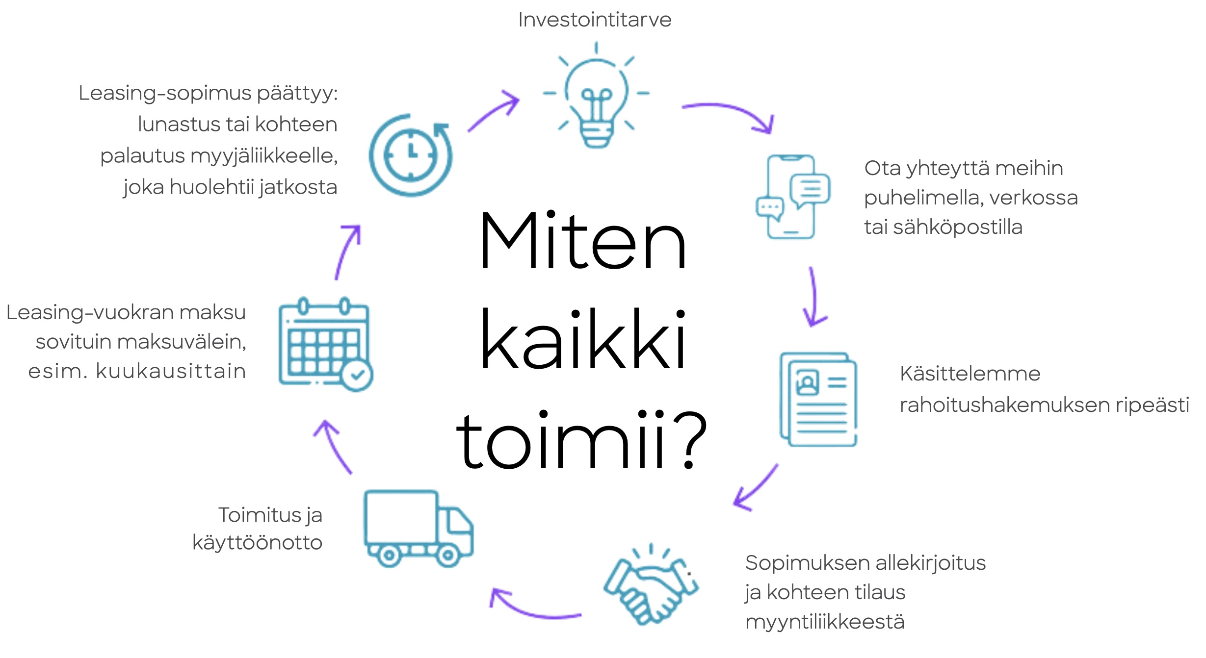 Leasing on pitkäaikaista vuokraamista ja se ei lähtökohtaisesti johda omistamiseen. Nykyaikaiset leasingtuotteet joustavat muutostilanteissa.